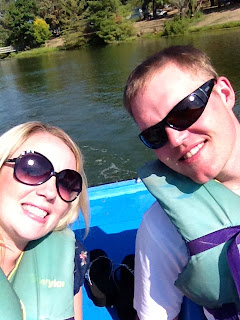 While my parents were in town for McKinley's birthday party, we decided to make a fun weekend of their visit and head out and stay in a cabin at Mahoney State Park. It was a really neat place to stay! We had a nice cabin and there was tons of stuff to do at the park! We rented a paddle boat and took turns paddling around the lake.